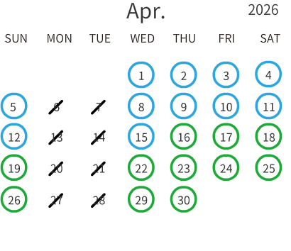 出勤日をご確認の上、店舗を選択してご予約へお進みください。