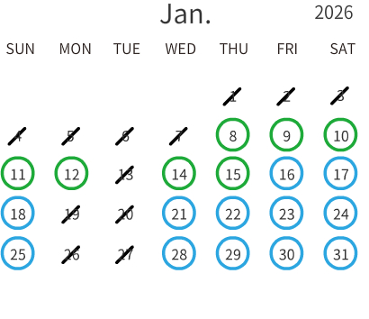 出勤日をご確認の上、店舗を選択してご予約へお進みください。