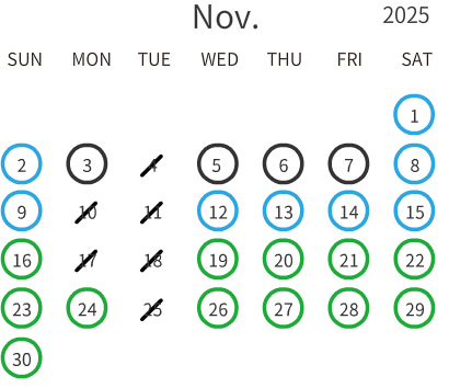 出勤日をご確認の上、店舗を選択してご予約へお進みください。